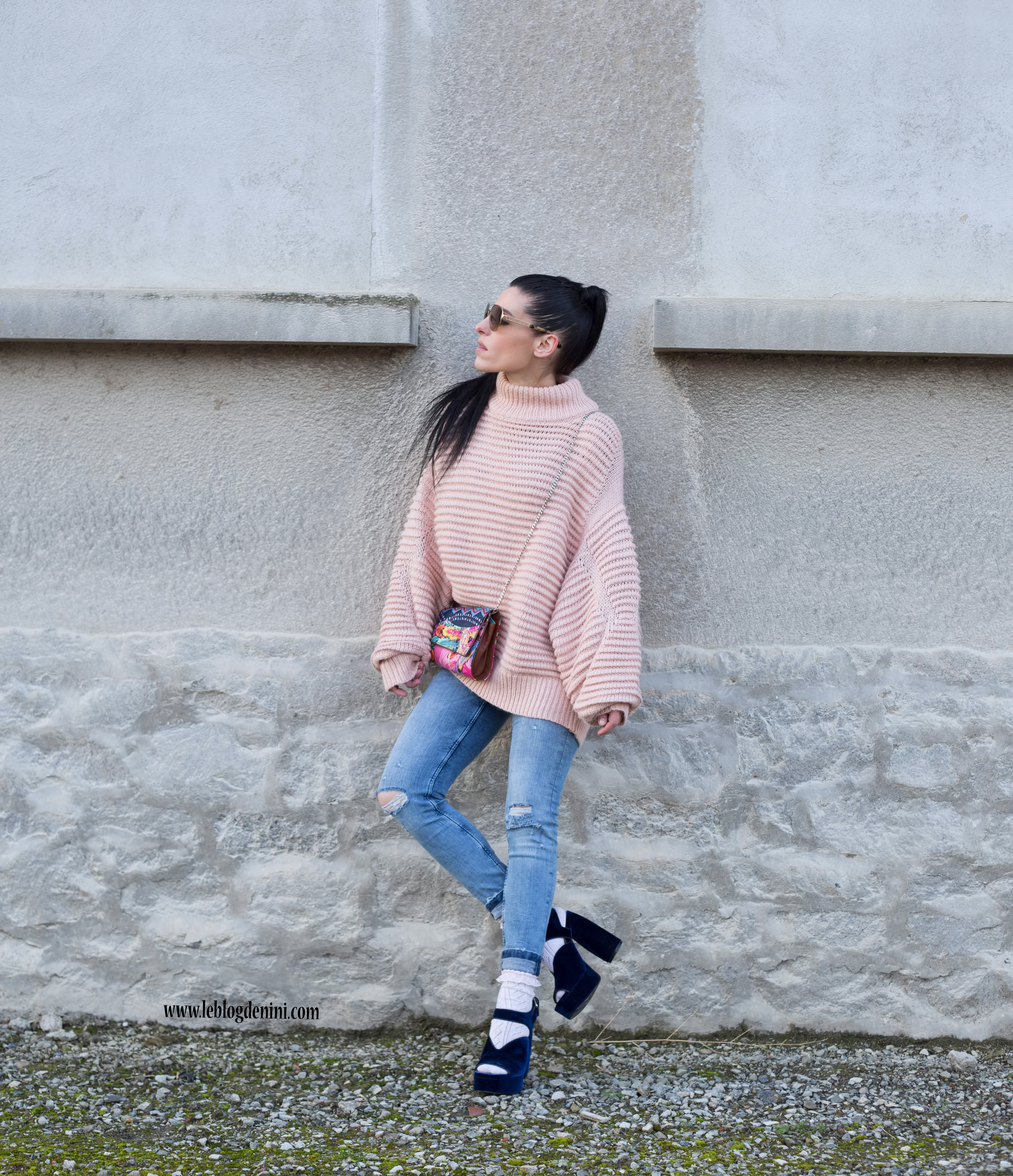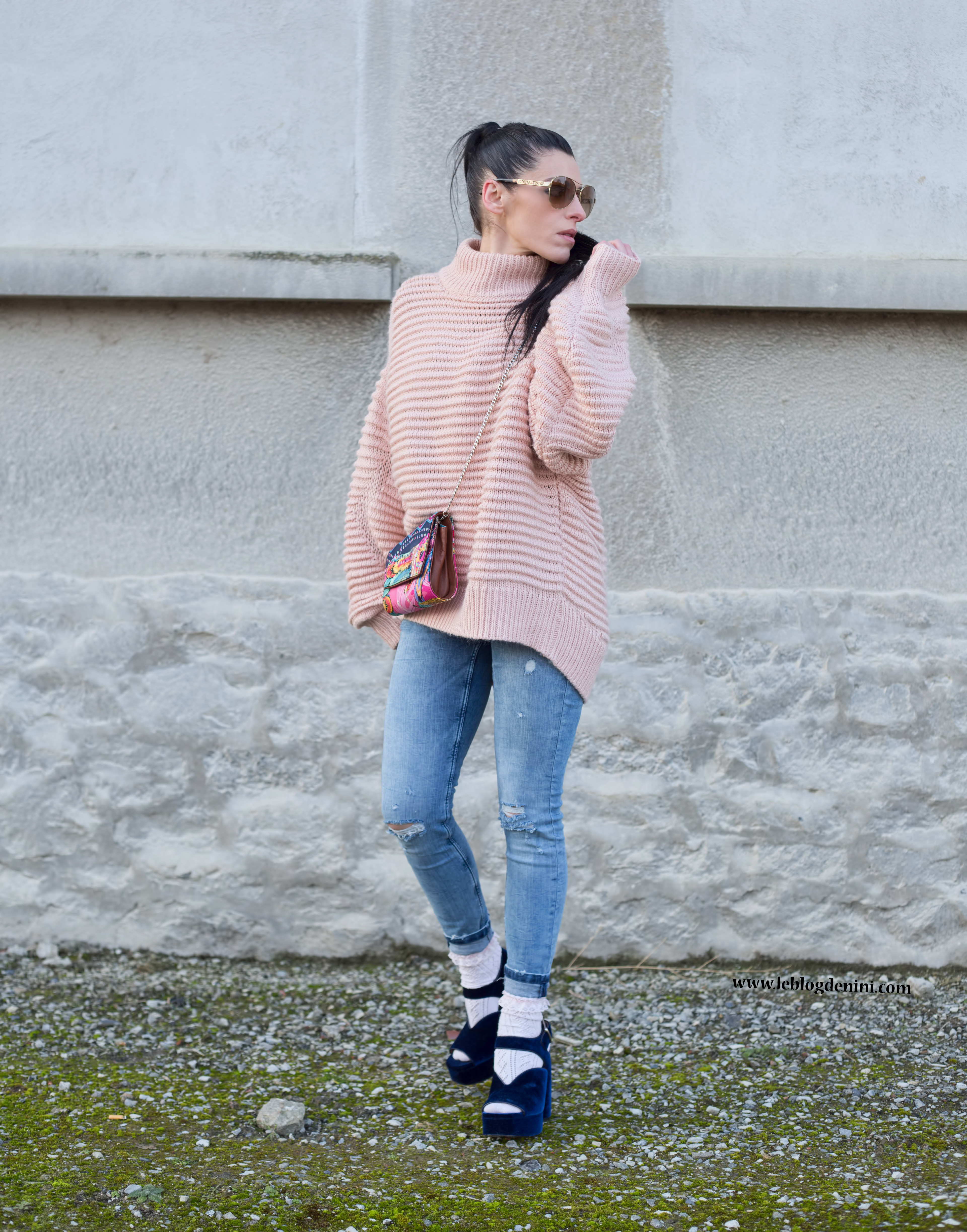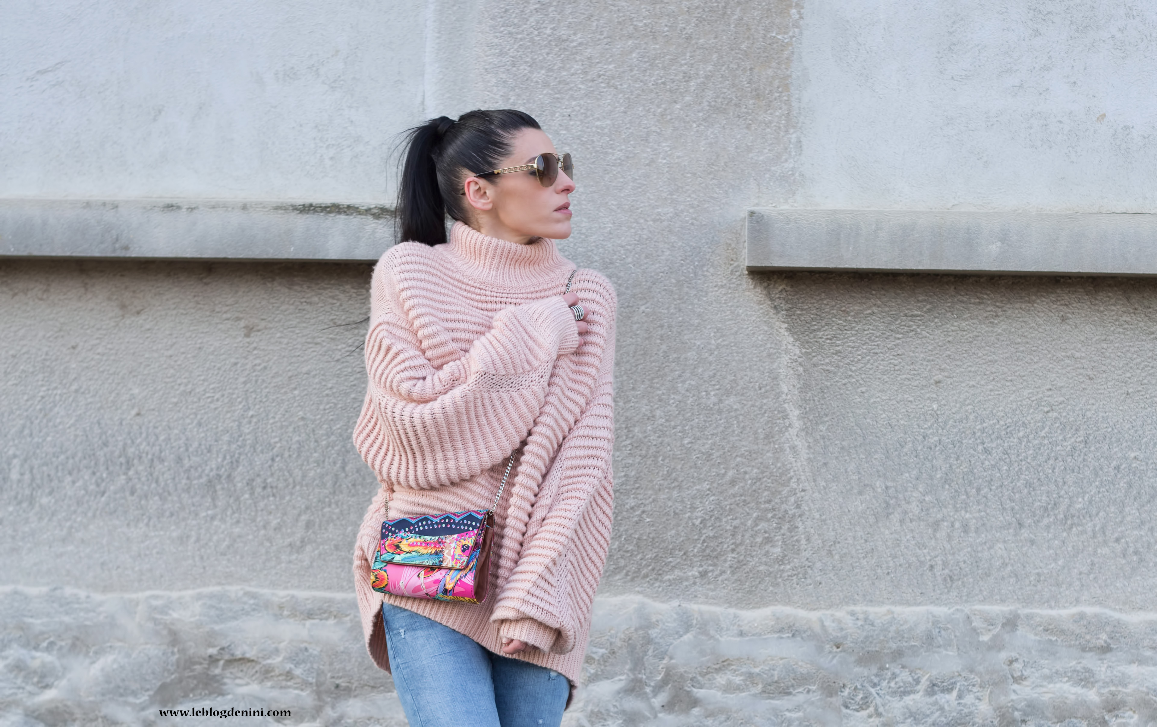 Concernant le prix du look, je ne vous ai pas menti : sandales ZARA soldées à 12 euros + jeans ZARA soldé à 19 euros et pull H&M à 39,99 €… (le tout sold out sauf le pull en boutique mais introuvable sur le site de H&M)et ce sac PINEDA COVALIN, un souvenir précieux de mes vacances au Mexique.