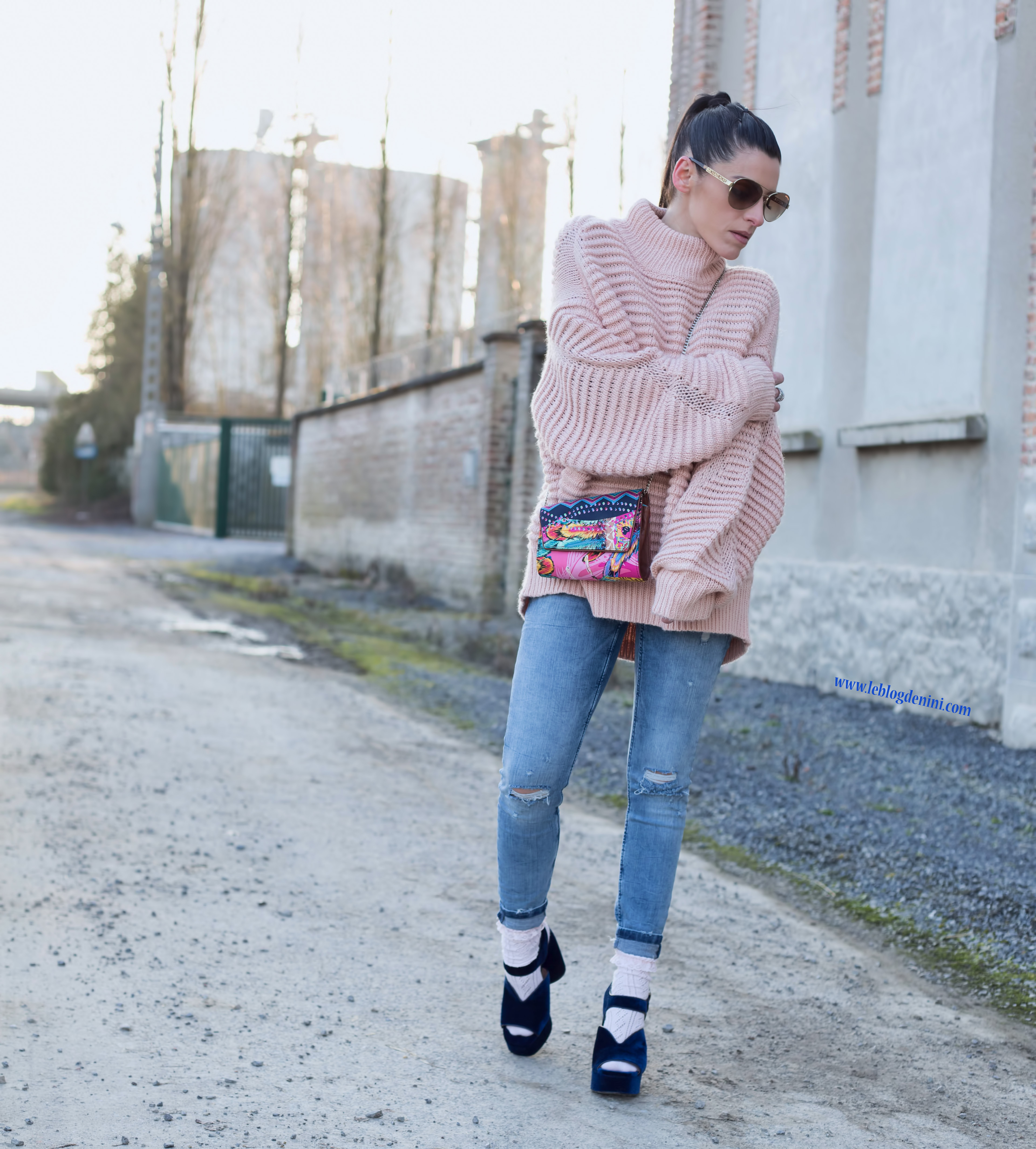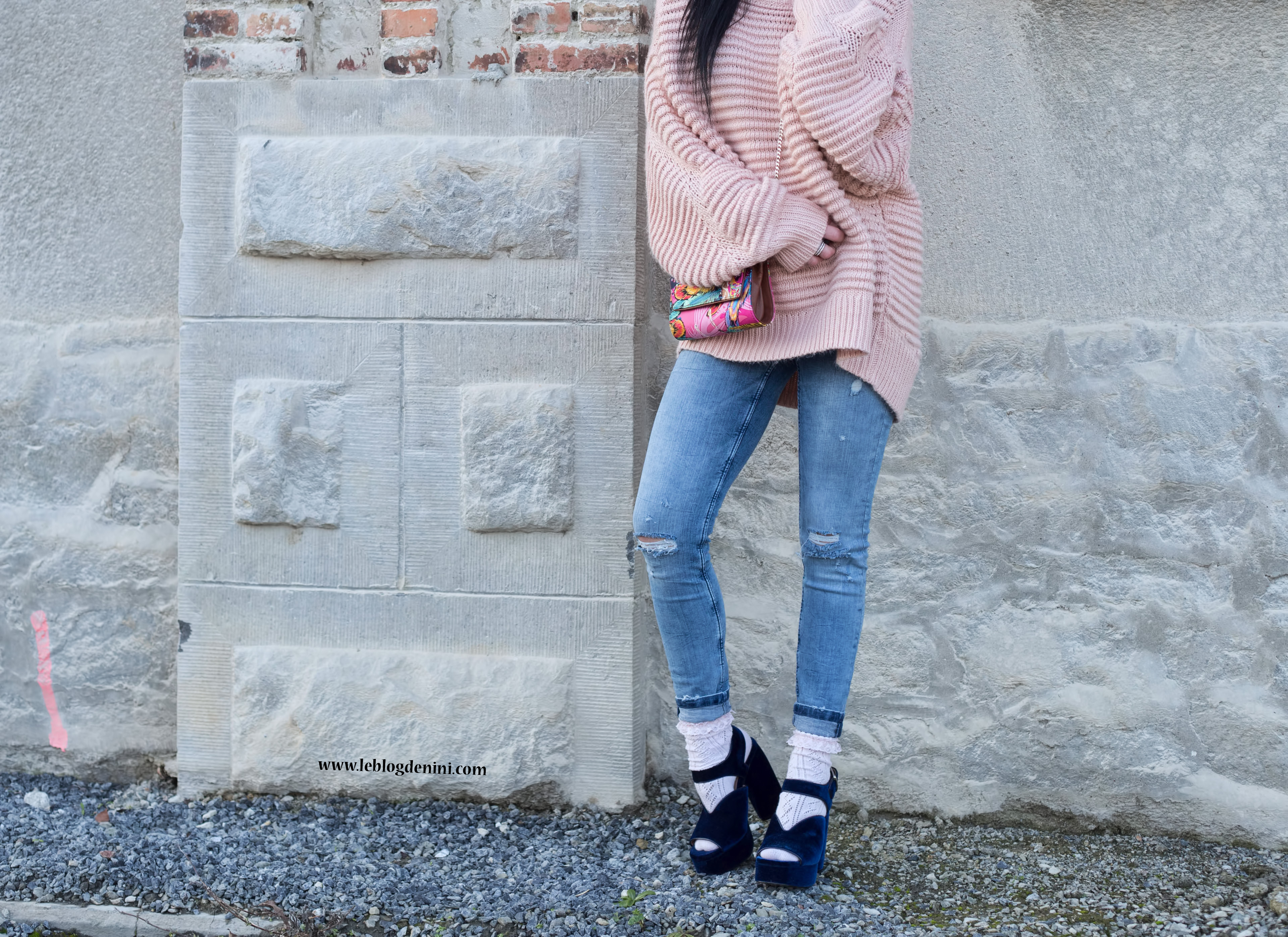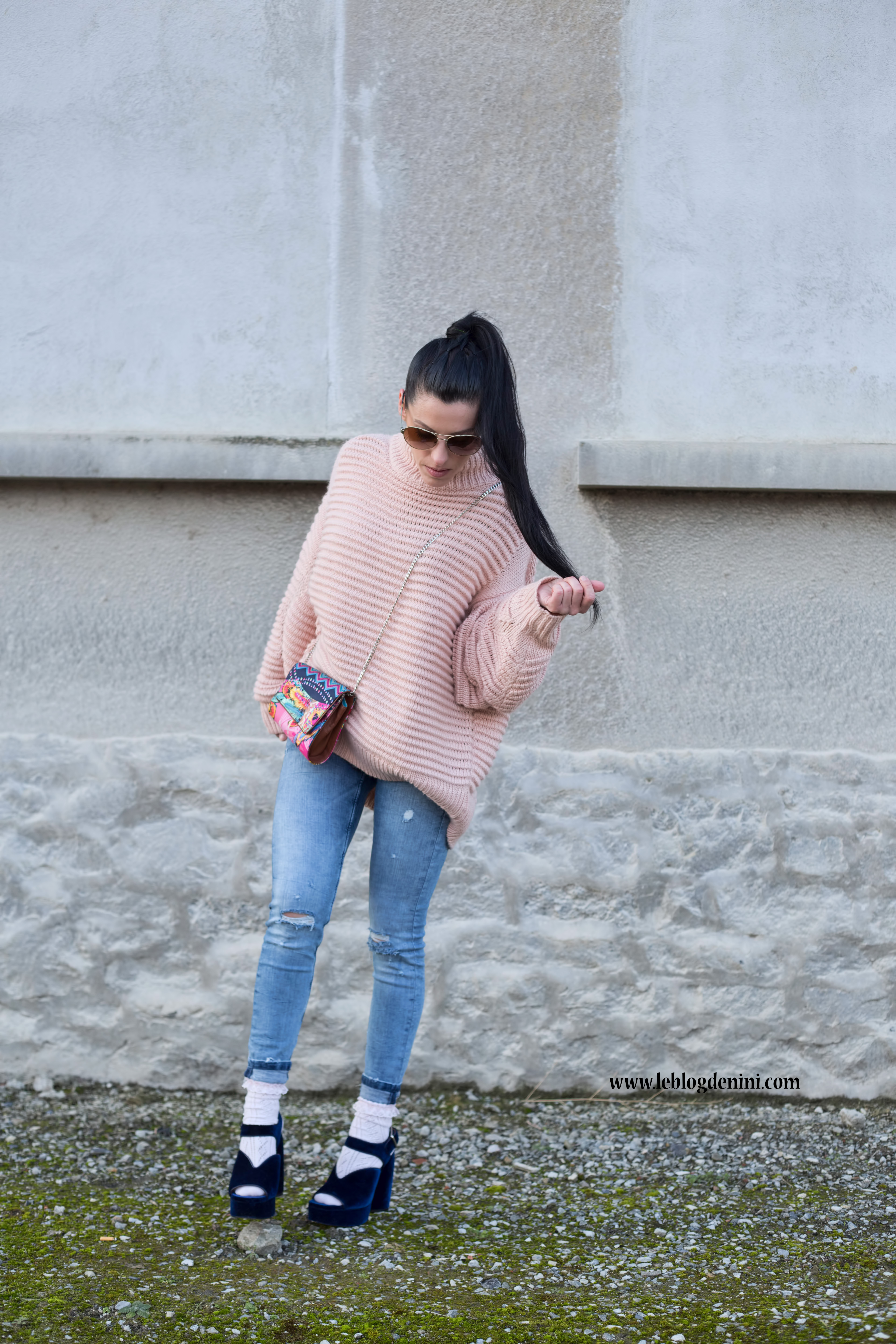 Concernant le prix du look, je ne vous ai pas menti : sandales ZARA soldées à 12 euros + jeans ZARA soldé à 19 euros et pull H&M à 39,99 €… (le tout sold out sauf le pull en boutique mais introuvable sur le site de H&M)et ce sac PINEDA COVALIN, un souvenir précieux de mes vacances au Mexique.