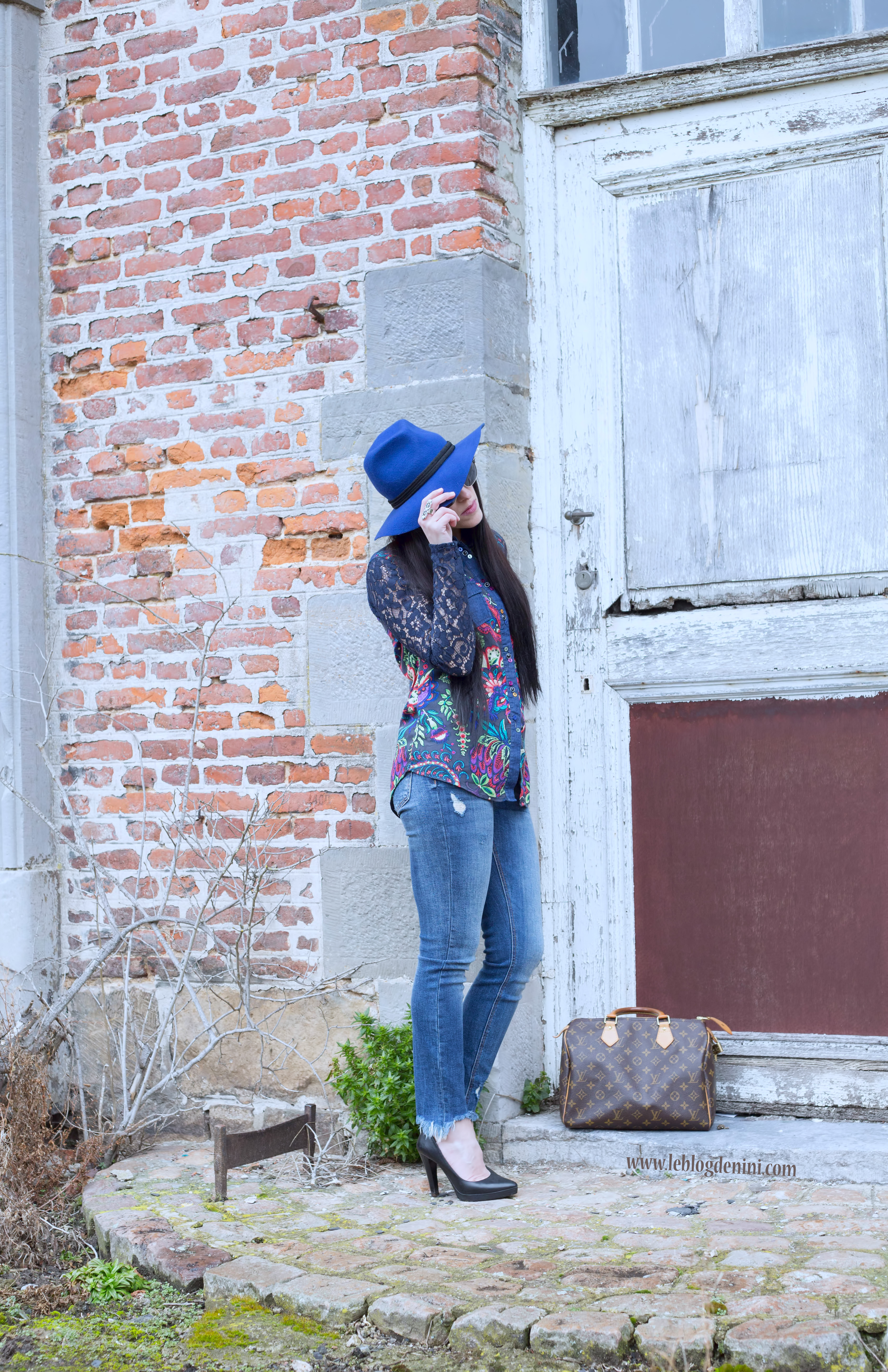 *Chemise: T S-desigual ICI // jeans:T 34-Zara ICI//Veste: Morgan de toi old portée ICI//Chapeau:MAJEPARIS ICI...