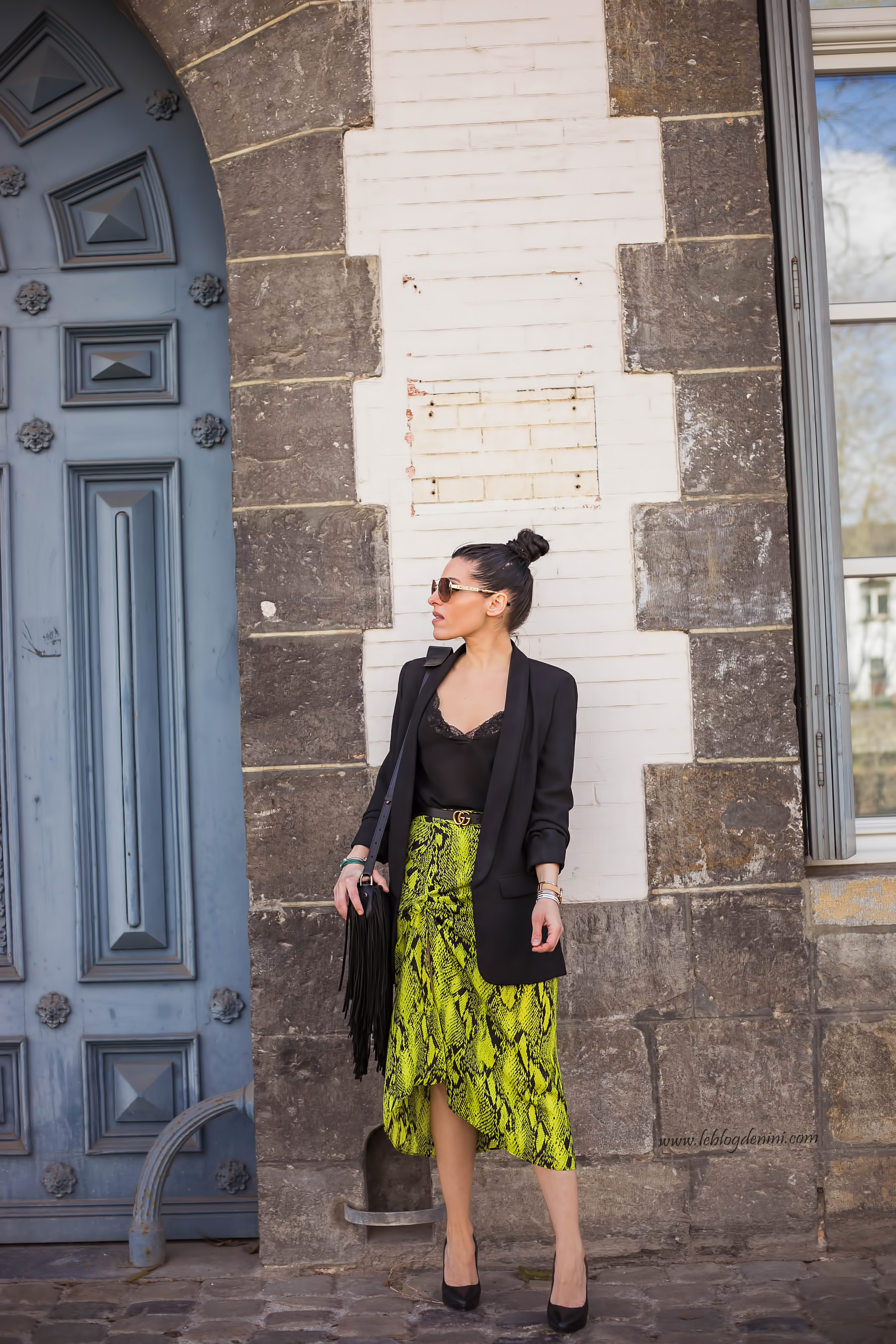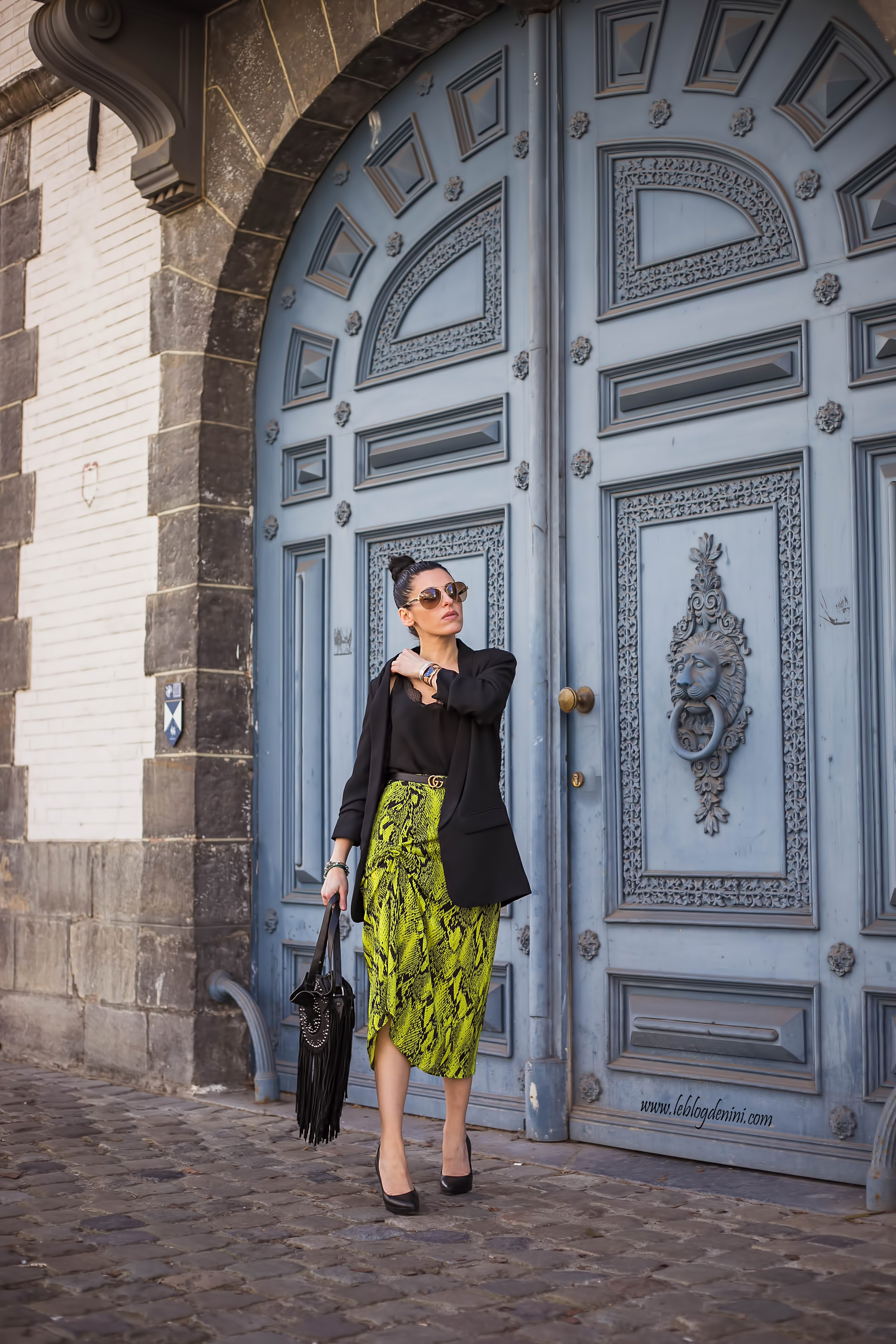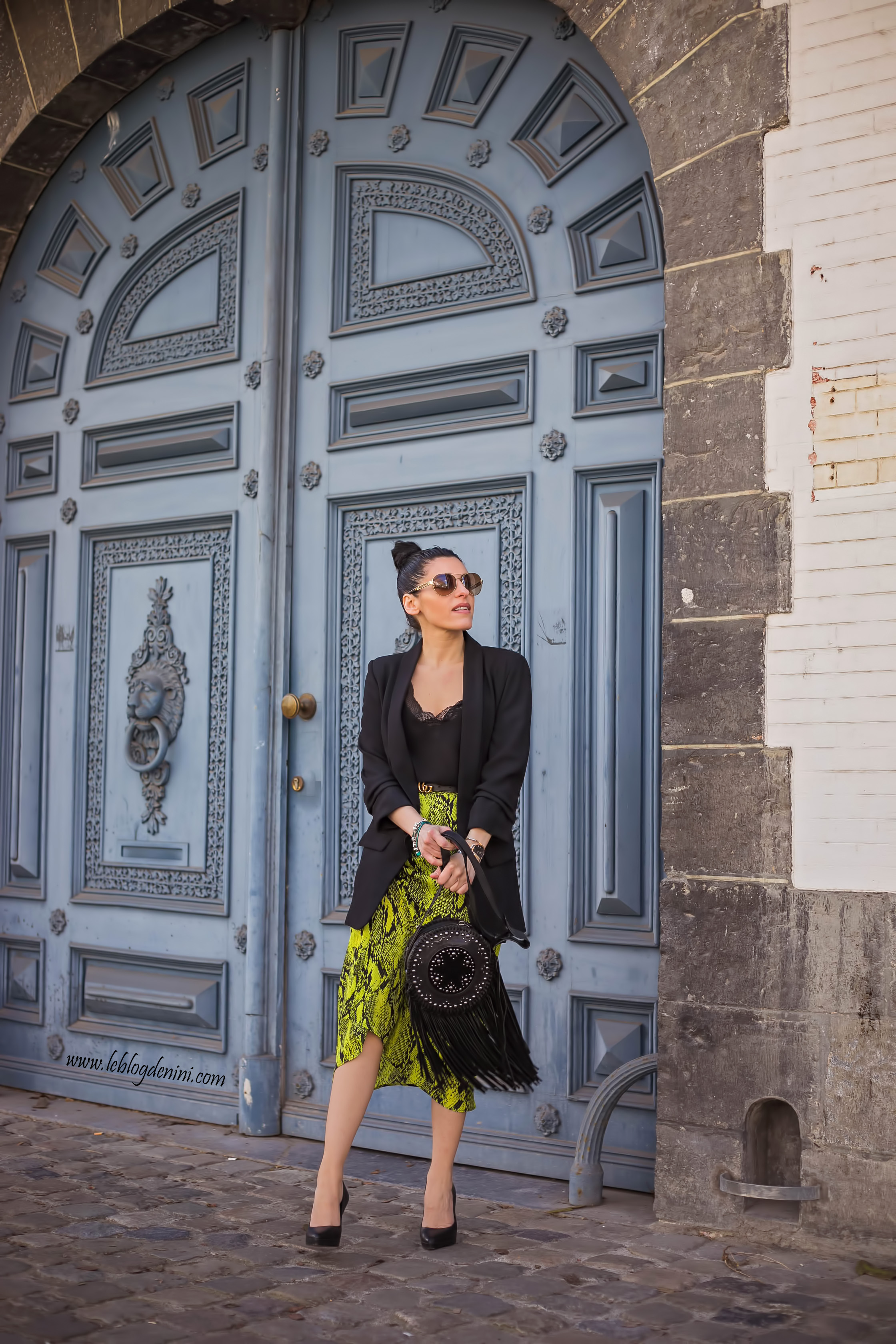 Pour le reste, tu reconnaîtras mon sac à frange ZADIG ET VOLTAIRE, une veste tailleur de chez ZARA ancienne co mais que tu peux retrouver dans des modèles similaires dans chaque nouvelle co ainsi qu’un top ancienne co également de chez ZARA, que tu retrouves aussi blabla blabla et ma ceinture GUCCI qui ne me quitte plus! et que tu peux shopper en cliquant ICI