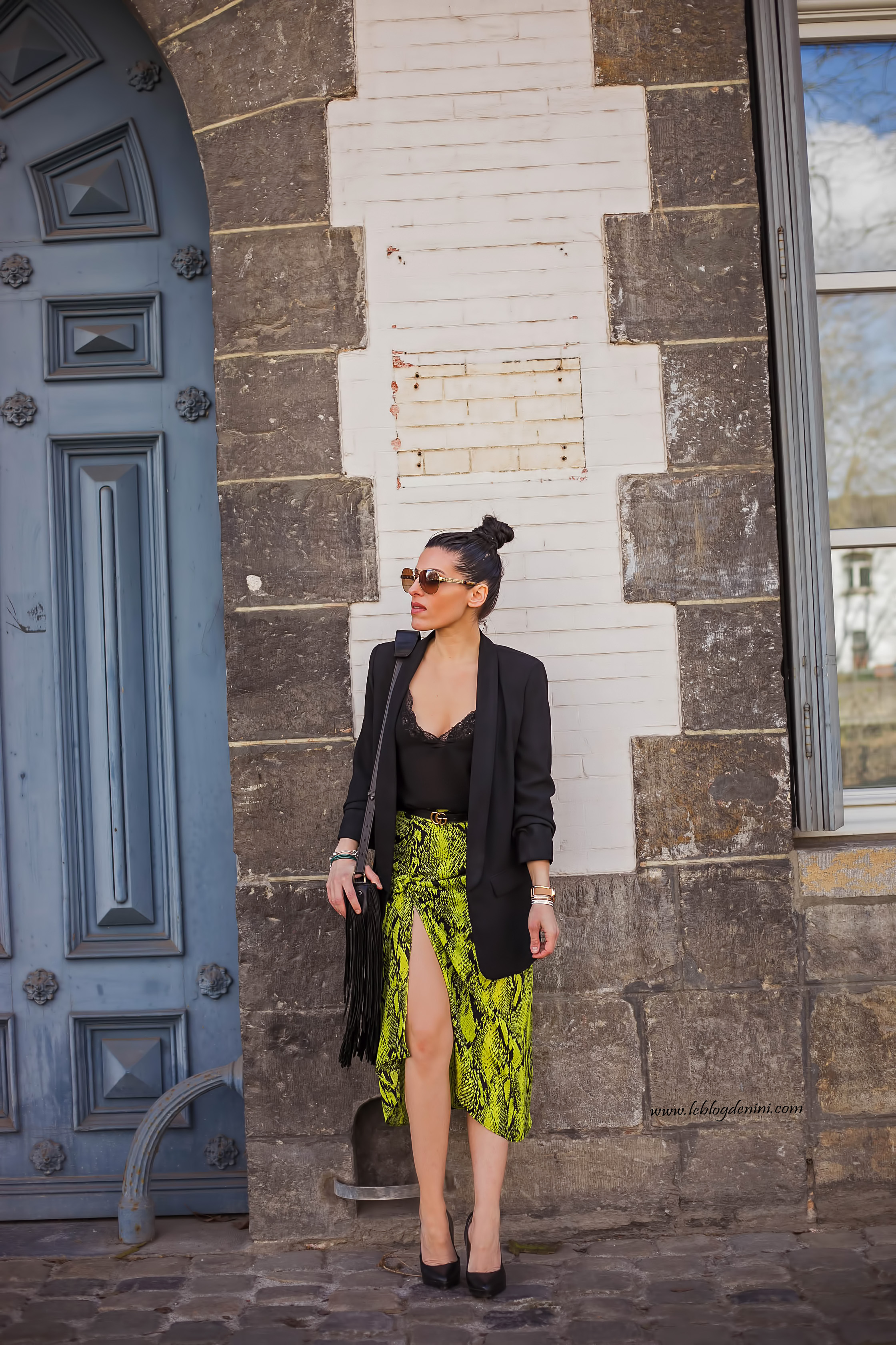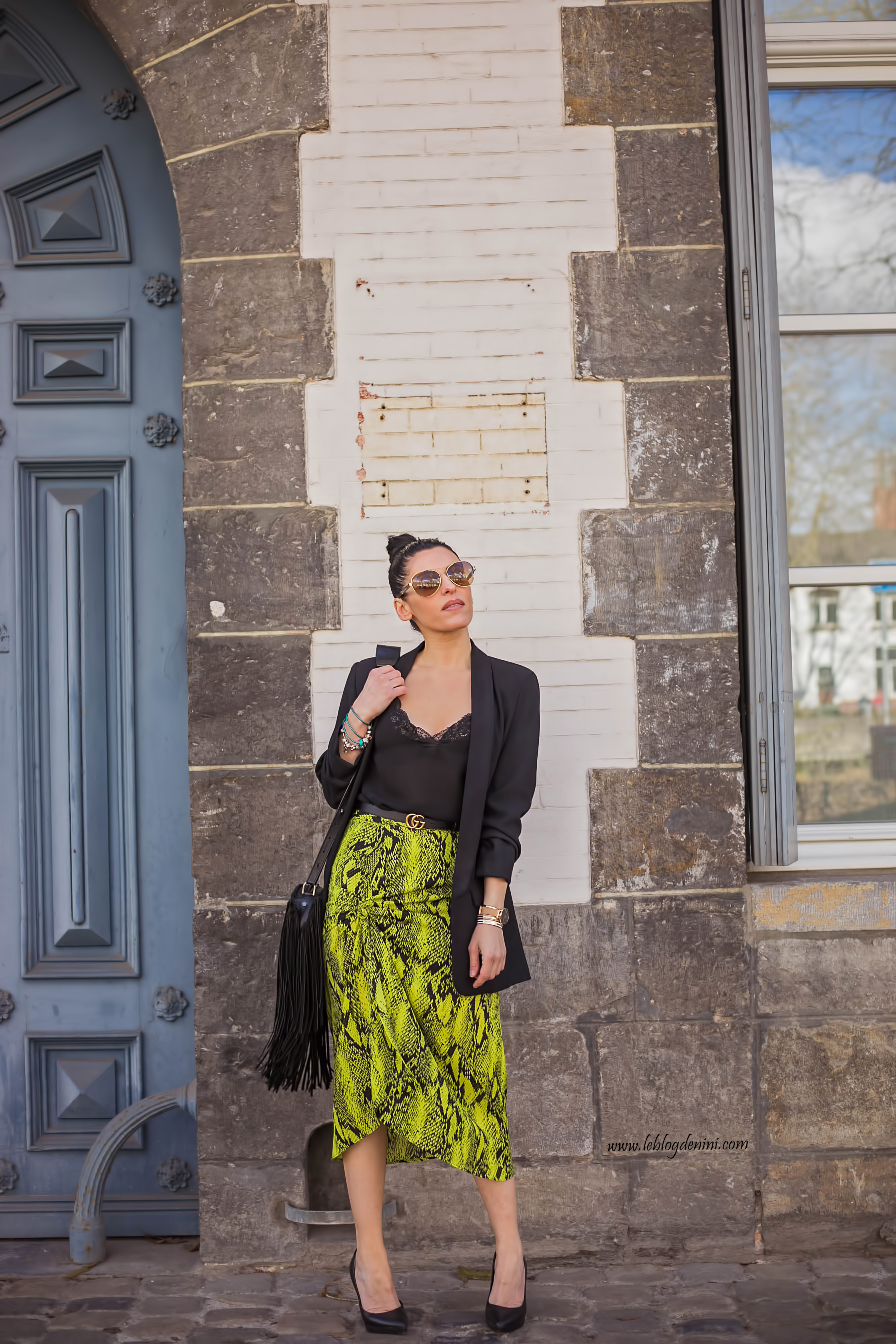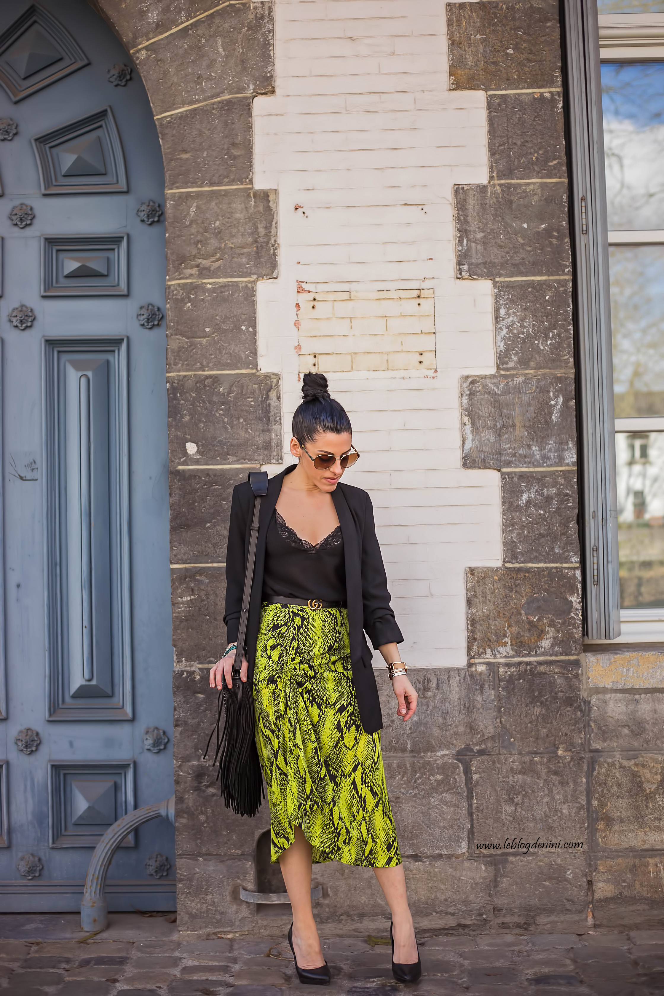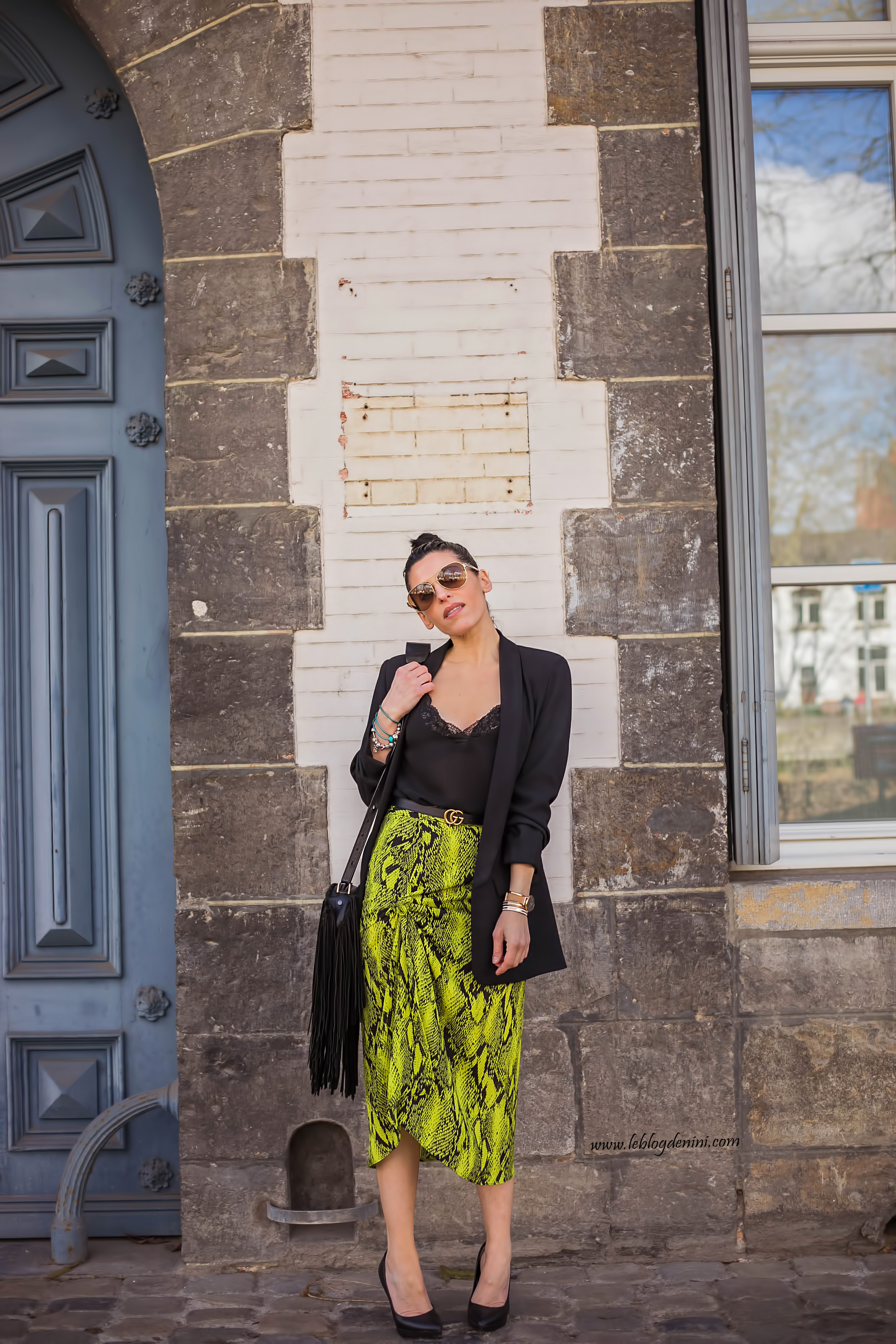 Pour le reste, tu reconnaîtras mon sac à frange ZADIG ET VOLTAIRE, une veste tailleur de chez ZARA ancienne co mais que tu peux retrouver dans des modèles similaires dans chaque nouvelle co ainsi qu’un top ancienne co également de chez ZARA, que tu retrouves aussi blabla blabla et ma ceinture GUCCI qui ne me quitte plus! et que tu peux shopper en cliquant ICI