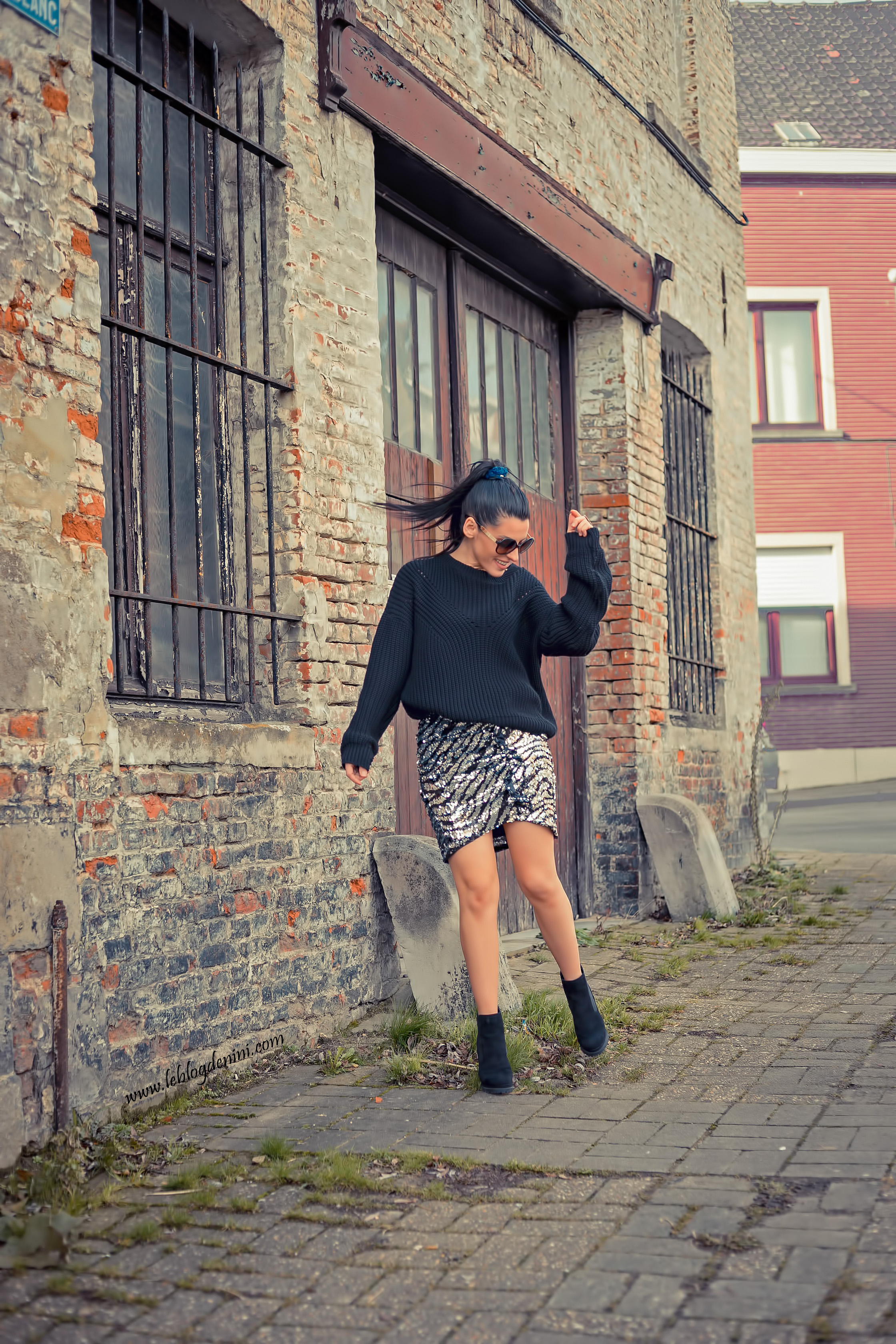Je trouve le Glitter très joli mais clairement, histoire de ne pas en faire trop, j’ai décidé de couper le look avec un pull et des boots. Ma foi, parfaitement portable en journée, pas besoin d’attendre une occasion spéciale ou une année entière qu’arrivent les fêtes de fin d’année LOL
