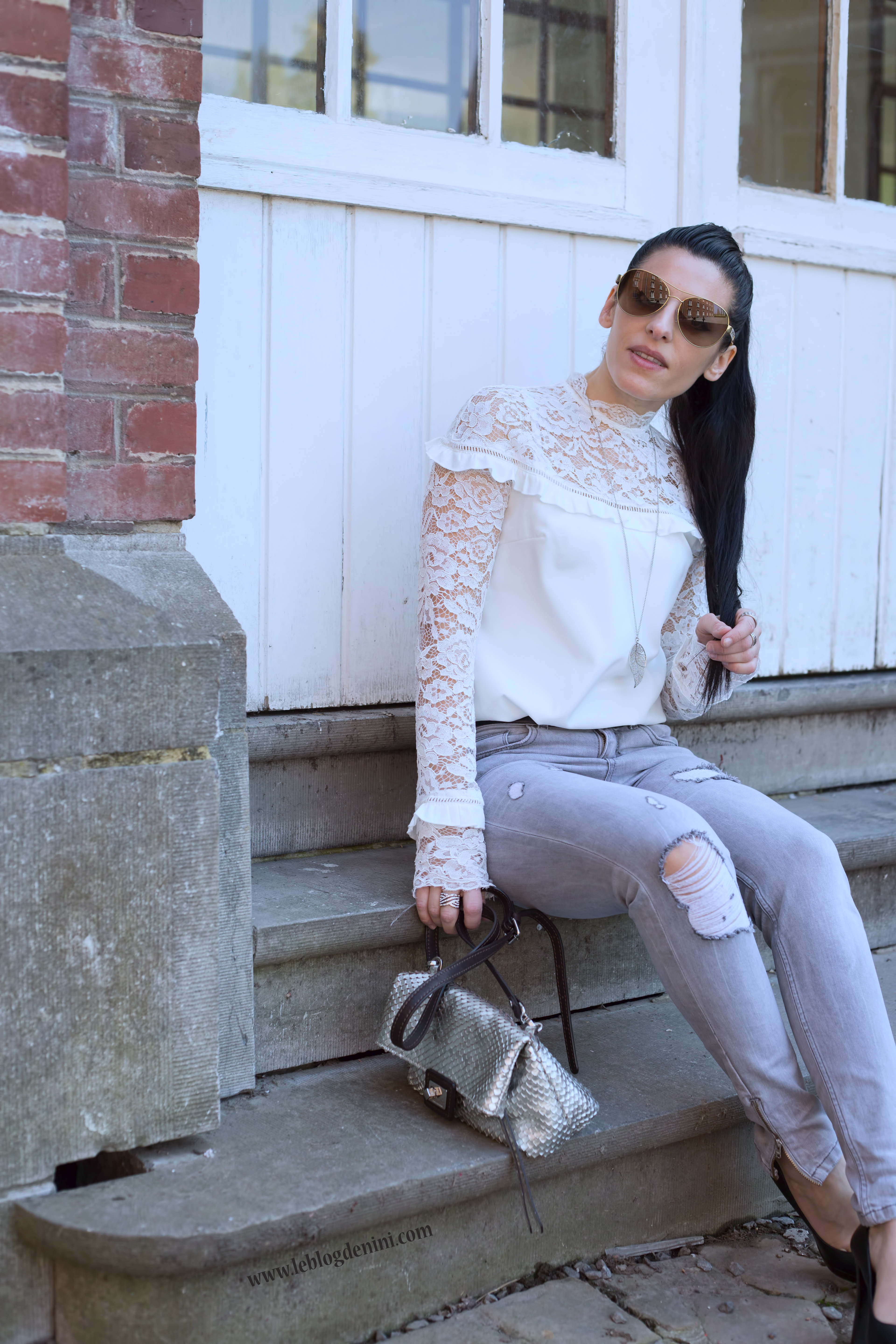 petit look tout doux aujourd’hui avec ce top, ces petits détails en dentelle et ce jeans IKKS que j’aime tant.
