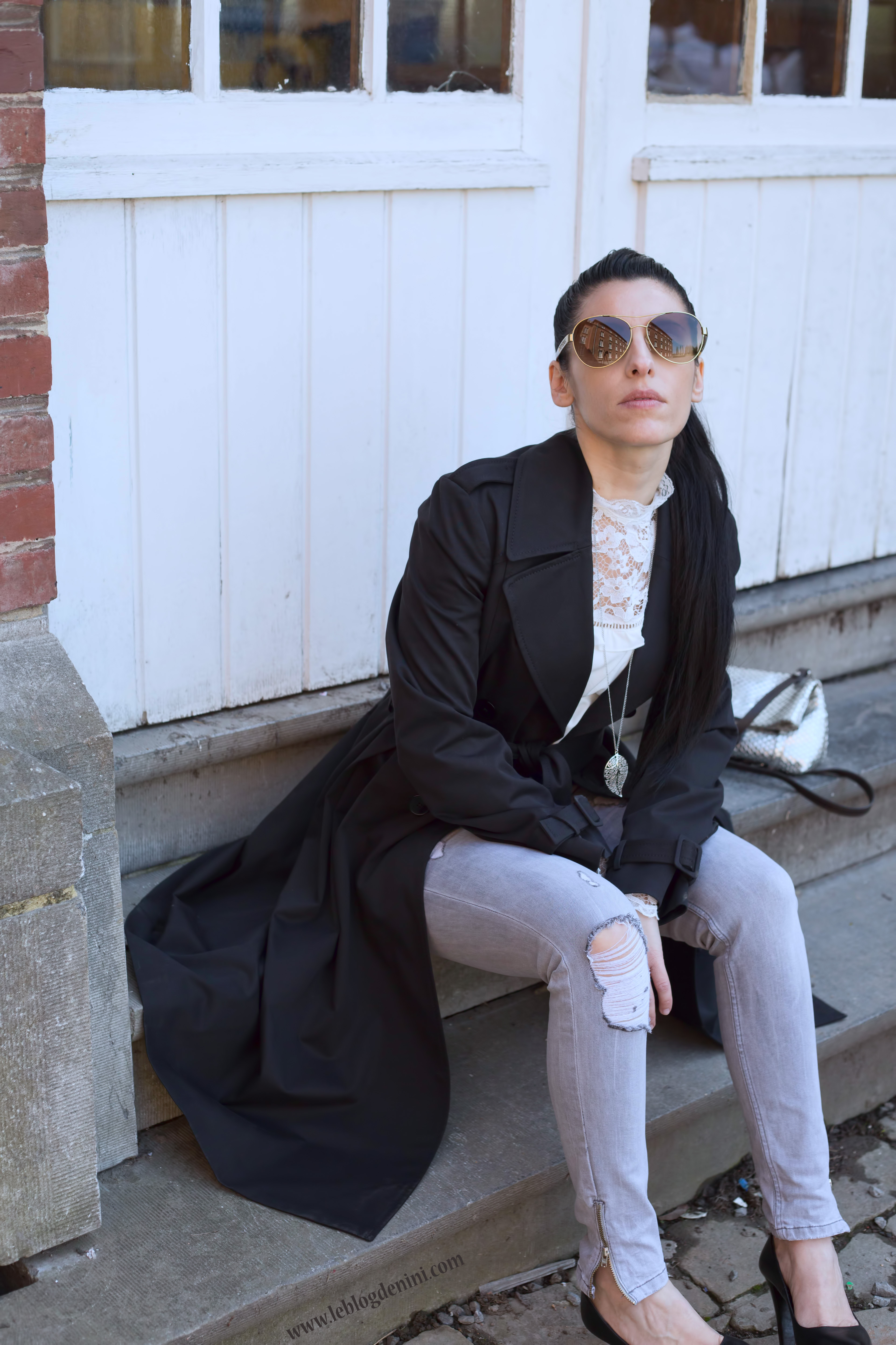 Top: SHEIN (lien dans la section fashion time/ où trouver mes vêtements // jeans: IKKS OLD//Trench Coat: Claudie perlot en rupture trouvé sur place des tendances // sac: Gianni chiarini ols// escarpins: Bruno premi old …