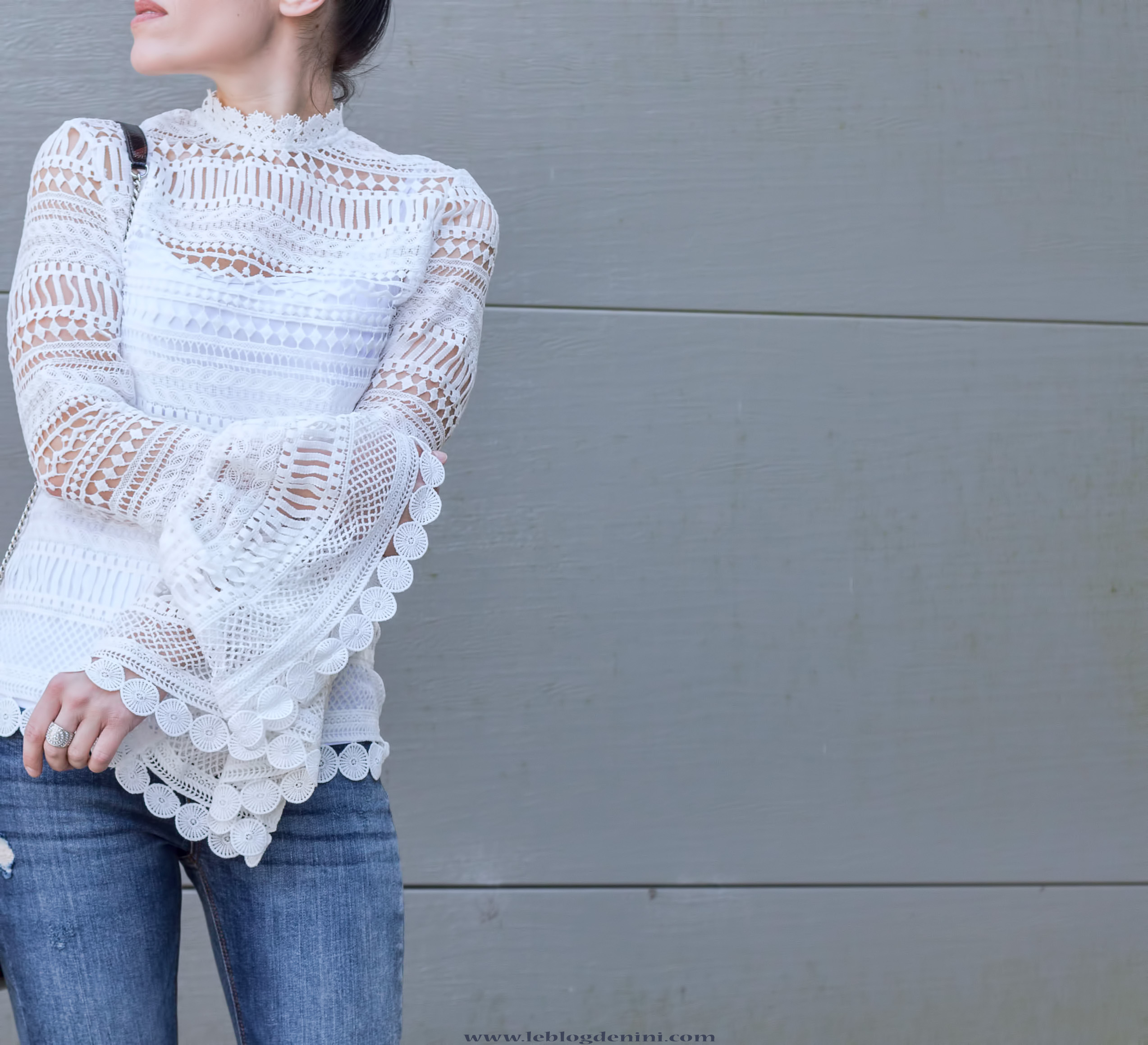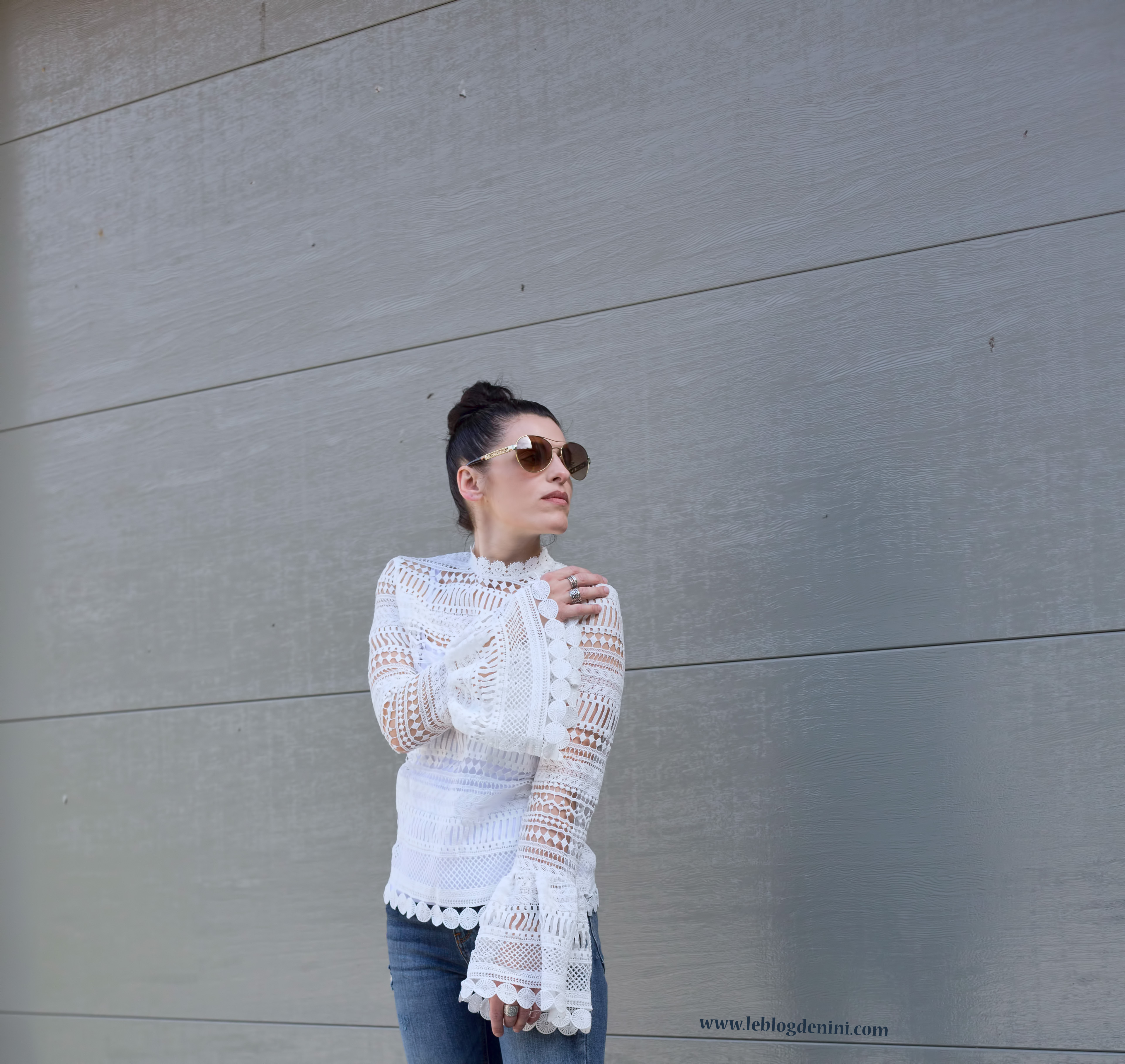 Sous le top, j’ai mis une simple petite blouse à brettelle blanche mais un top nude fonctionne aussi ou avec juste un soutien pour les plus audacieuses 😉 c’est également très joli.