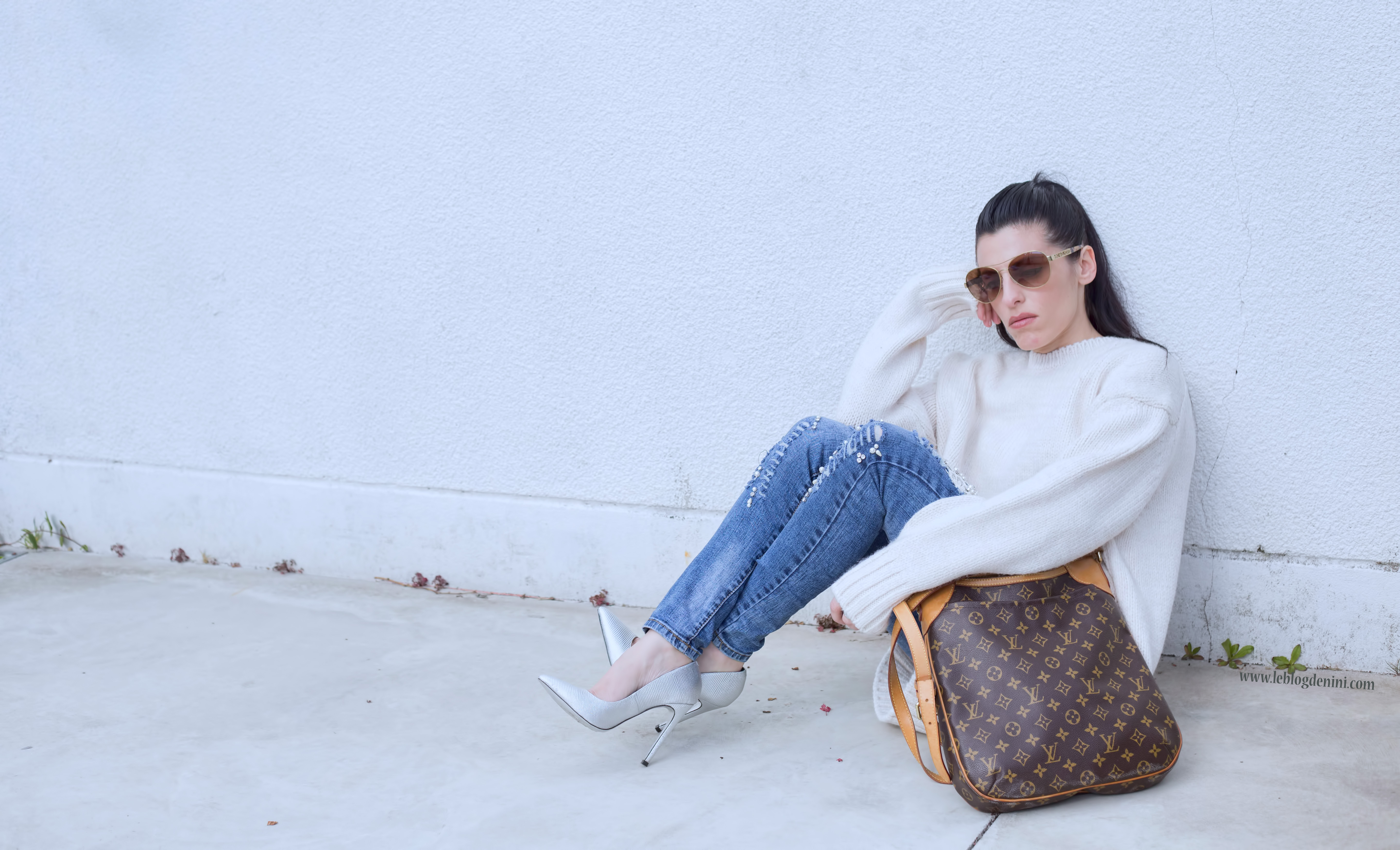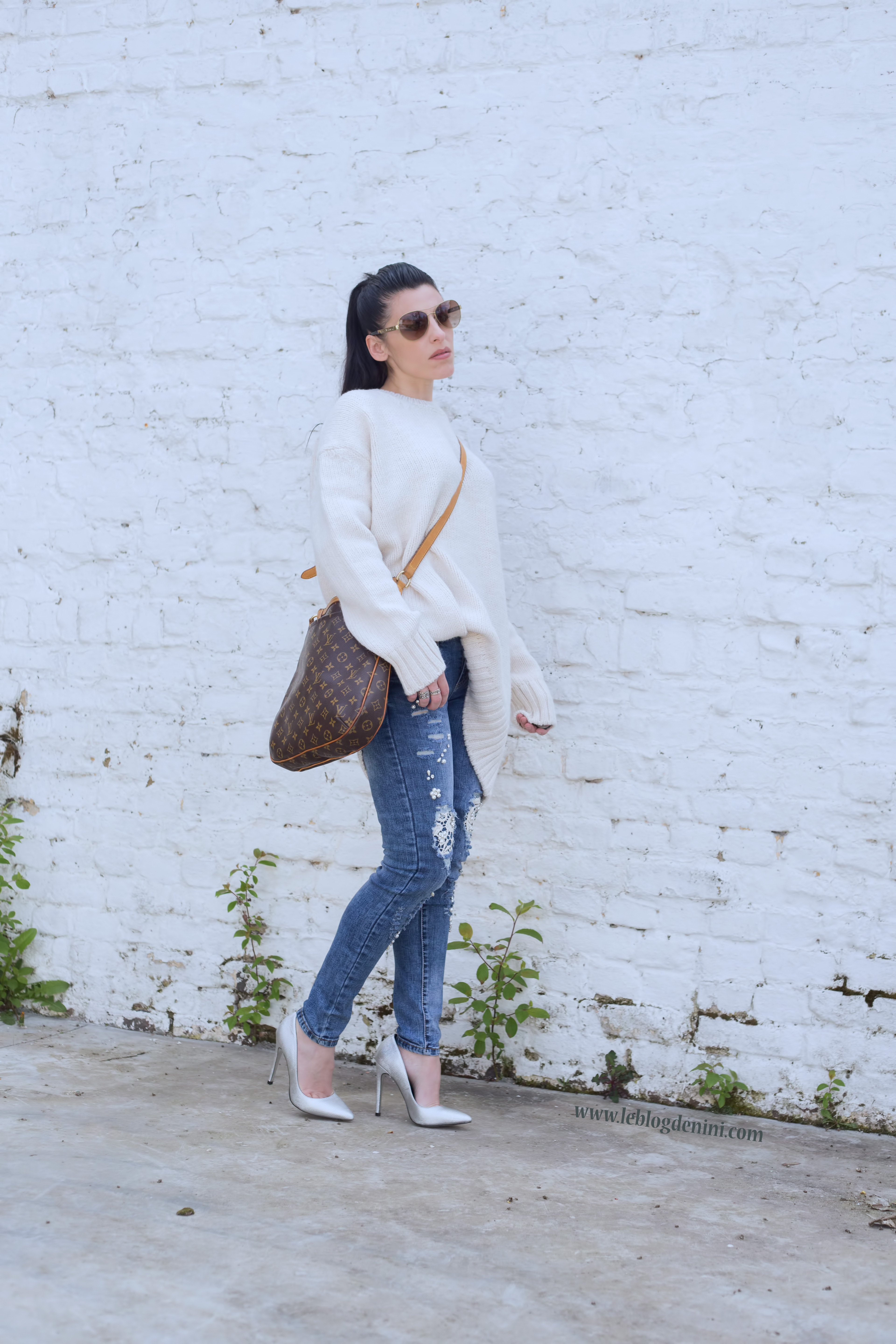 Pull XL TS ZARA ICI// jeans: T34 3suisses ICI//Sac: Louis vuiton old //escarpins: JUST CAVALLI old