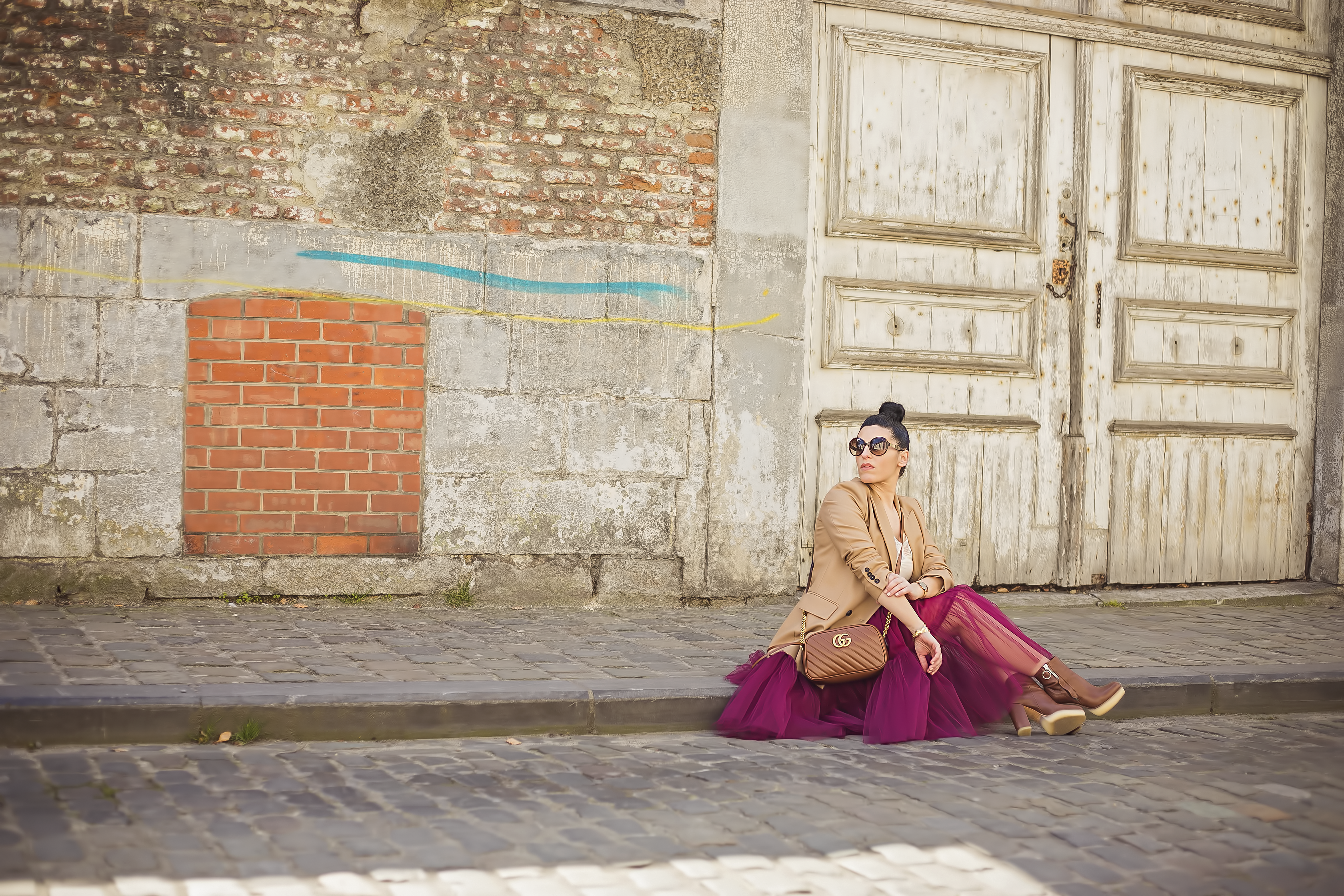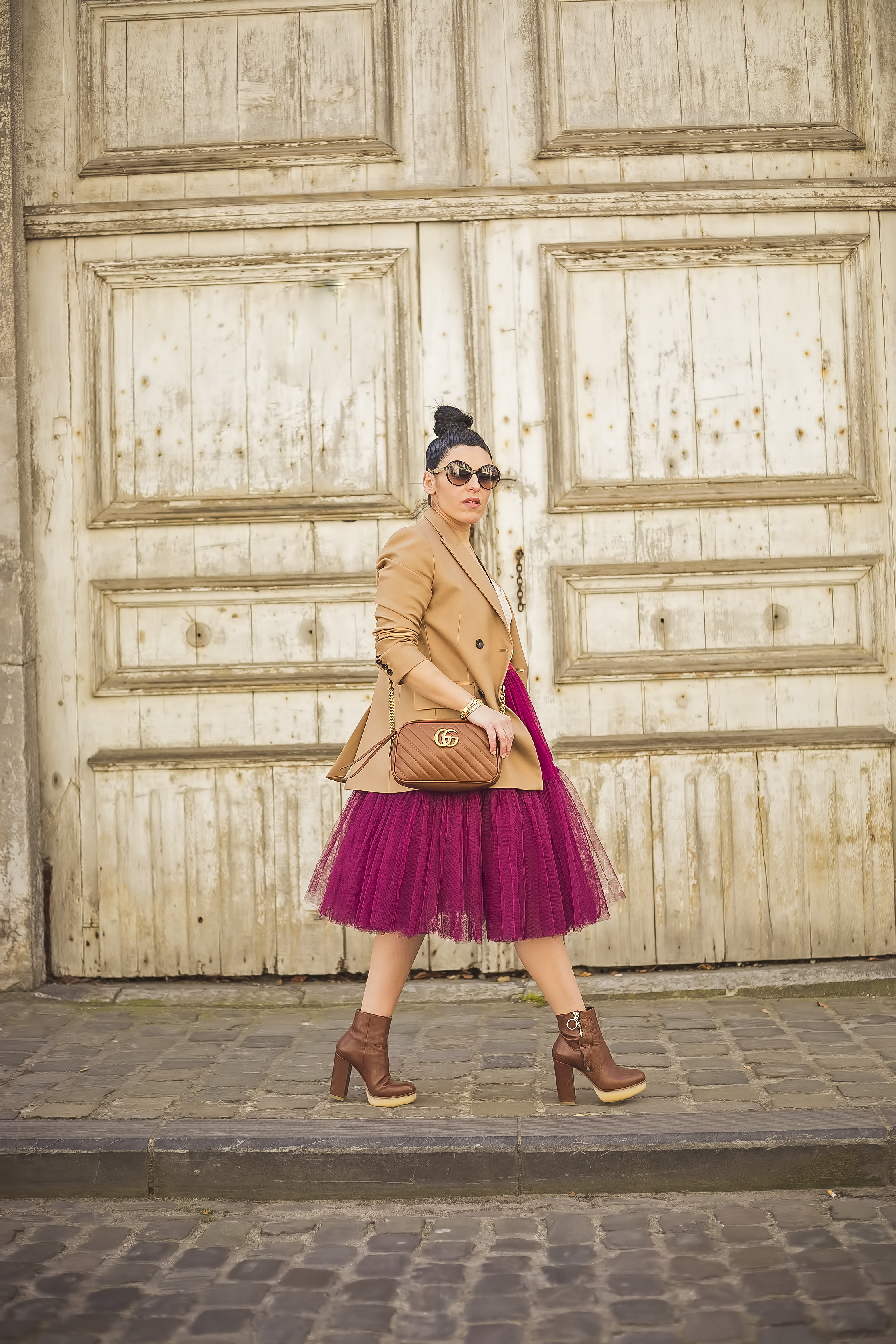 Pour le premier look, sans hésitation, j’ai fait le choix du tulle parce que c’est incontestablement LA pièce glamour au possible dans laquelle il est impossible de se sentir à l’étroit et qui sera toujours un bon choix, à condition évidemment de bien l’accessoiriser…